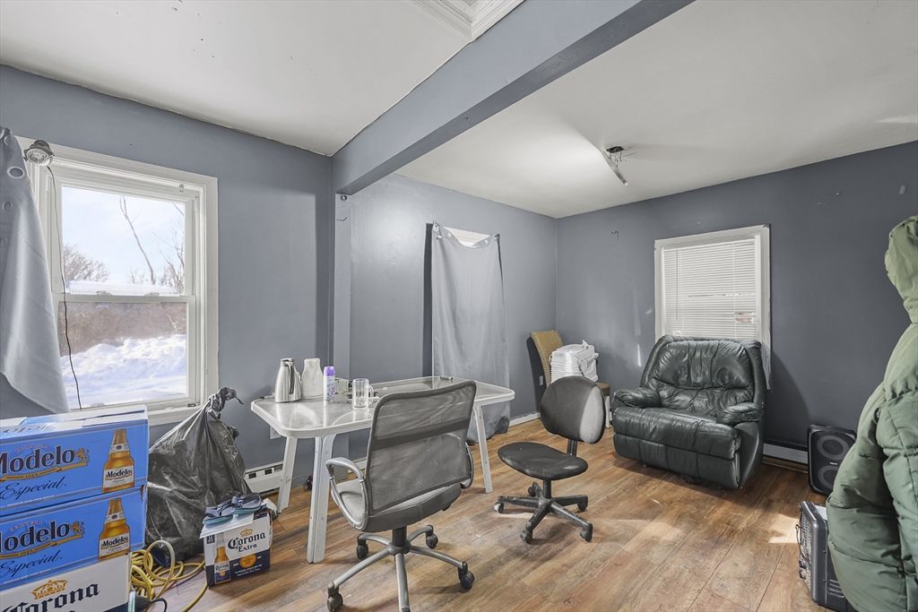 Unique opportunity to own a home on 0.45 acres, located at the end of a dead end street. This property is recognized by the City as two living units, however, only one unit has been recently renovated. It consists of living room, kitchen and updated bathroom. There is natural gas heat as well as electric baseboard. The unit next to it is a fixer-upper studio space that needs complete rehab. Attached to these units are two garages, currently being utilized by the owner as storage spaces. This siding of the building and the roof over the apartment were done in the last year. City water & sewer and plenty of parking complete this property!