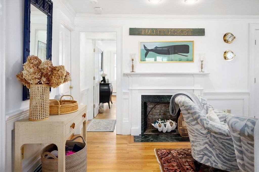 Discover the best of classic New England architecture and coastal luxury at this thoughtfully updated condo in the heart of Marion Village. The entry, distinguished by a charming transom window, opens to a light-filled interior with hardwood floors and crisp wainscoting. The living room is anchored by a fireplace and a built-in window seat capturing views of Sippican Harbor. French doors lead to an elevated outdoor deck overlooking the harbor, ideal for seasonal entertaining. The kitchen features granite countertops, white cabinetry, and stainless-steel appliances, adjacent to a dining area with a built-in cabinet. The primary suite serves...read more
