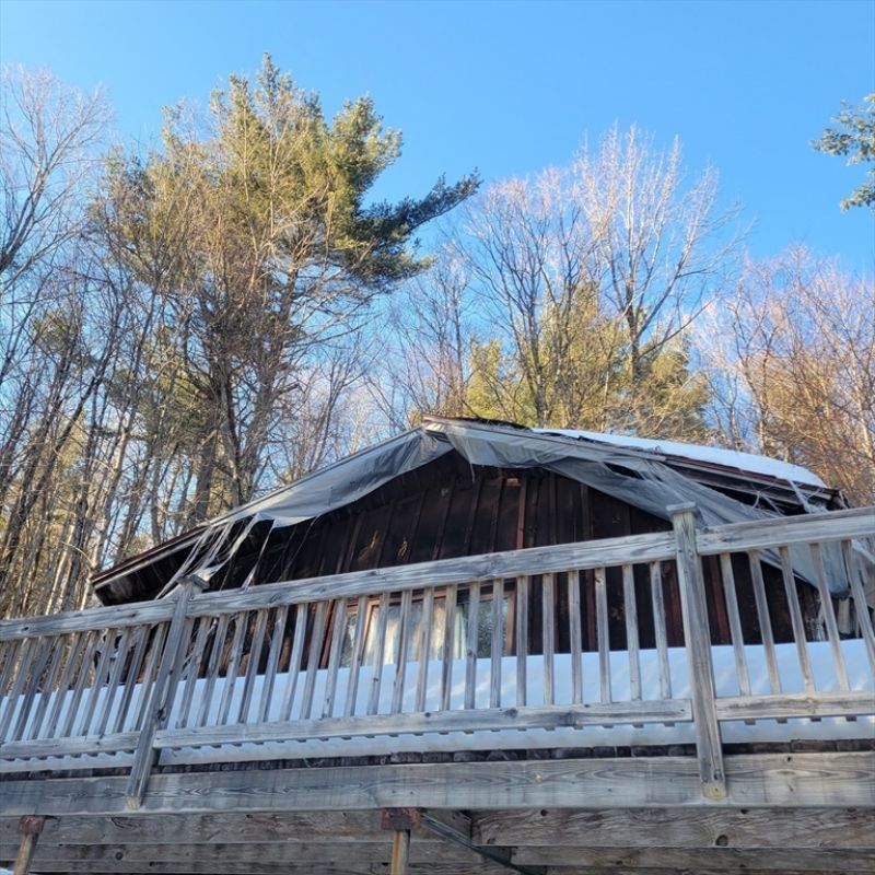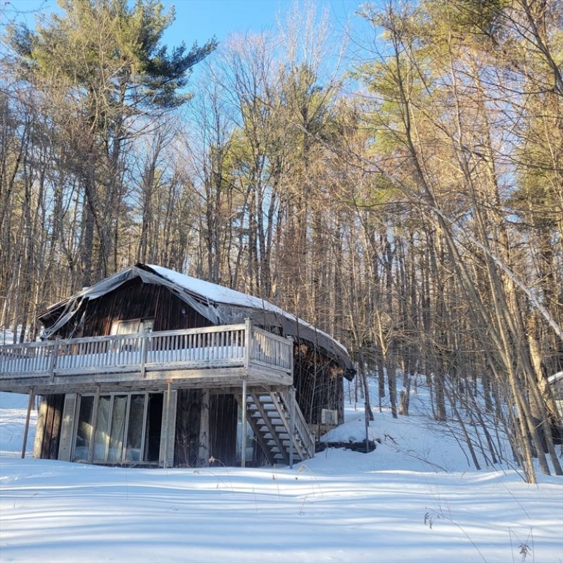 Custom home on a woodsy 7-acre lot in a very quiet area, on a private street. Solitude, woods and mature trees wrap this one-owner home that had been vacant for years. No heat, no utilities running. Buyers and brokers enter strictly at that their own risk-- substantive mold throughout and collapsed roof is apparent. Septic and well are present and are both the Buyer's responsibility. This property is a demolition most likely -- a great opportunity for and best suited for investor Buyers. Roof in places is partially collapsed. Garage looks stable and solid. Home looks to be on a cement pad (rather than a basement). Walking and...read more