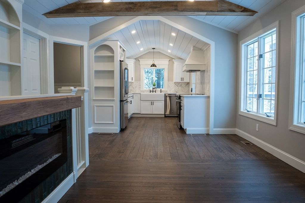 Sweet rental has undergone a remarkable studs-out renovation, transitioning from a classic cottage into a modern, high-efficiency home. Convenience meets elegance with a two bed, two full bath unit. Each room has been renovated with discerning clientele's wishes in mind. Cathedral ceilings give the feel of a much larger home, and the new gas fireplace adds ambience. The Primary bedroom boasts of a large, tiled walk-in shower, post and beam feel and large closet. Fully renovated kitchen w/farmers sink, SS appliances, tile backsplash, HW floors and plenty of natural light which opens up to the living area so conversations continually flow....read more